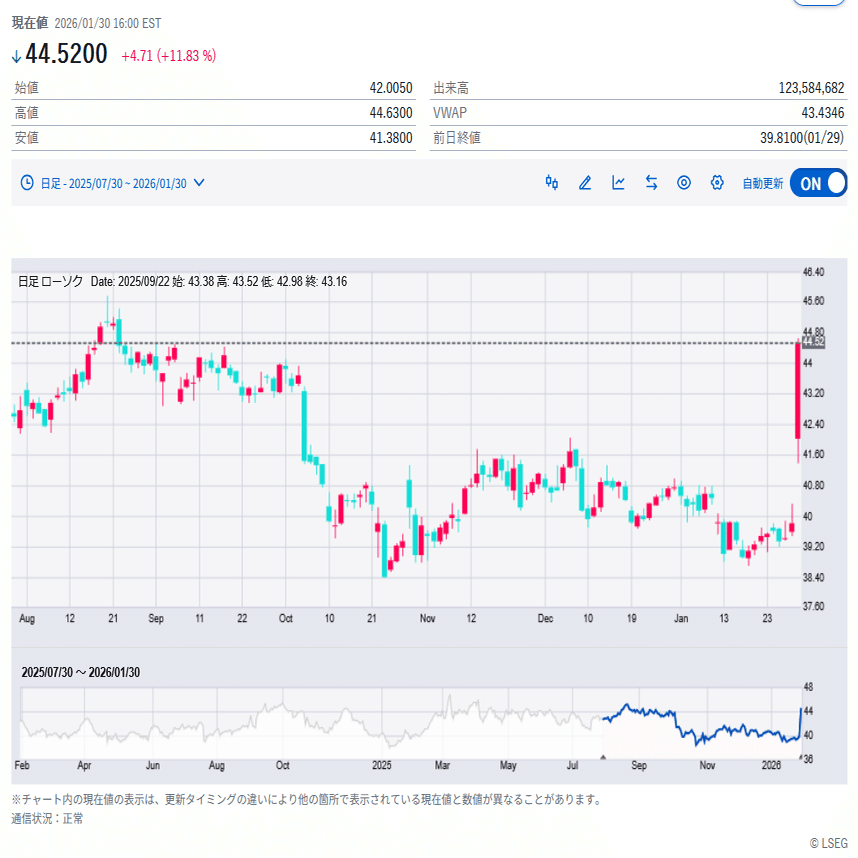 2025年第4四半期決算が市場予想を上回り、加えて大規模な株主還元策(自社株買い等)の発表が主な理由のようです。