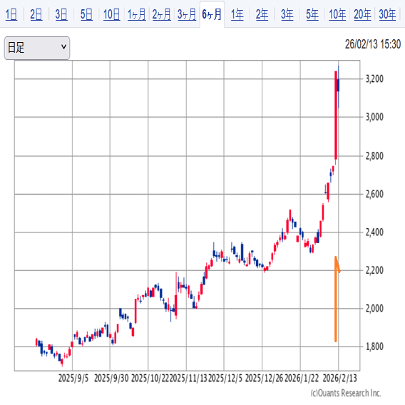 2月12日 終値 3,242円(+18.23%)
